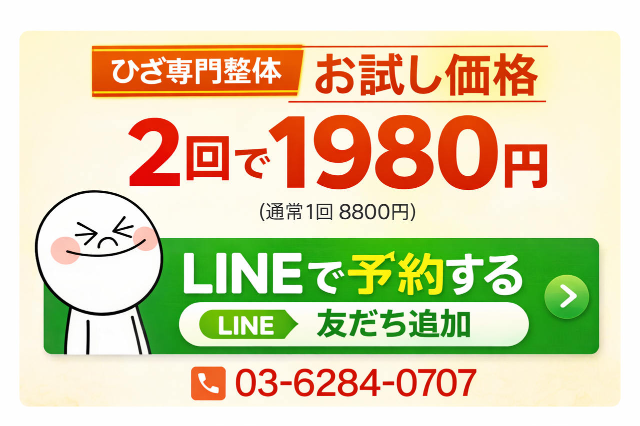 全て当院のみの施術となります。当院独自膝整体・骨盤施術・膝関節強化体操