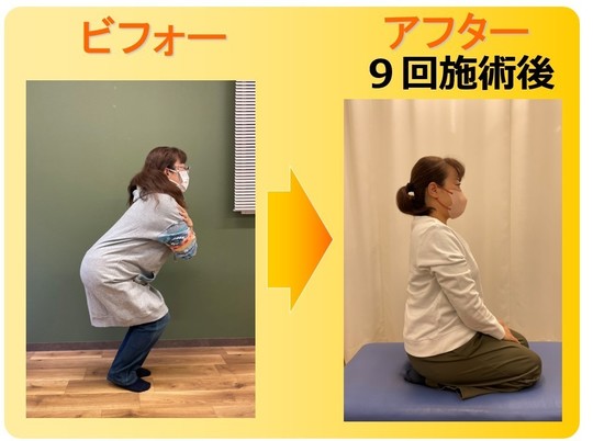 今ではちゃんと歩けるようになり正座も出来るようになりました。